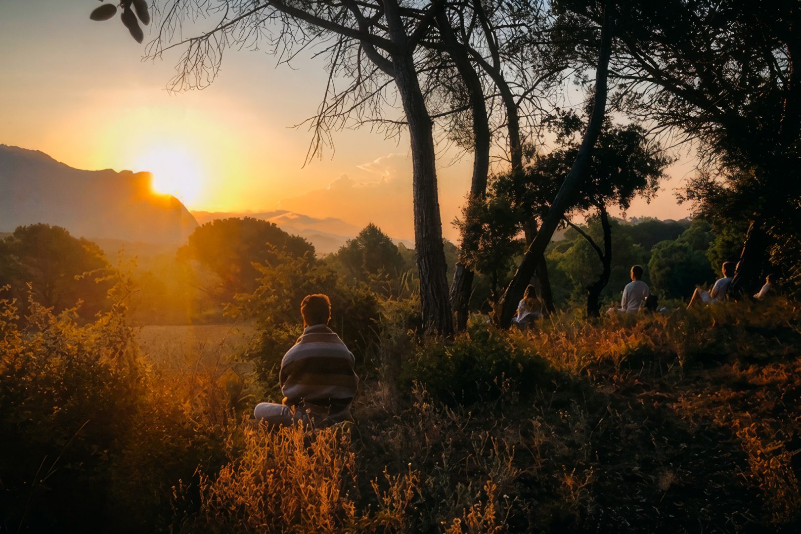 Las tardes dejaban espacio a la interioridad personal. Al caer el día, volvíamos a reunirnos para preparar la cena, que compartíamos en silencio en el porche. Cerrábamos con una meditación en la luz, música y oración. Todo estaba impregnado de recogimiento y armonía.